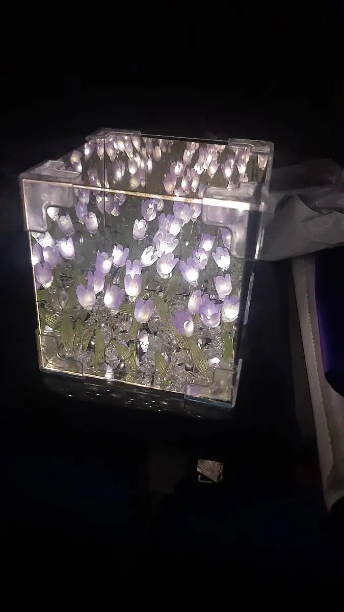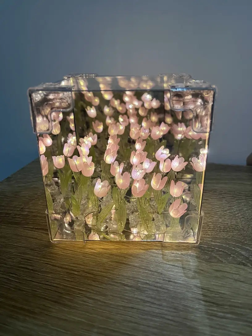 Cada vez que enciendes LumiTulip, los tulipanes iluminados se reflejan en un juego de espejos infinitos, creando un ambiente de ensueño y romanticismo en segundos.